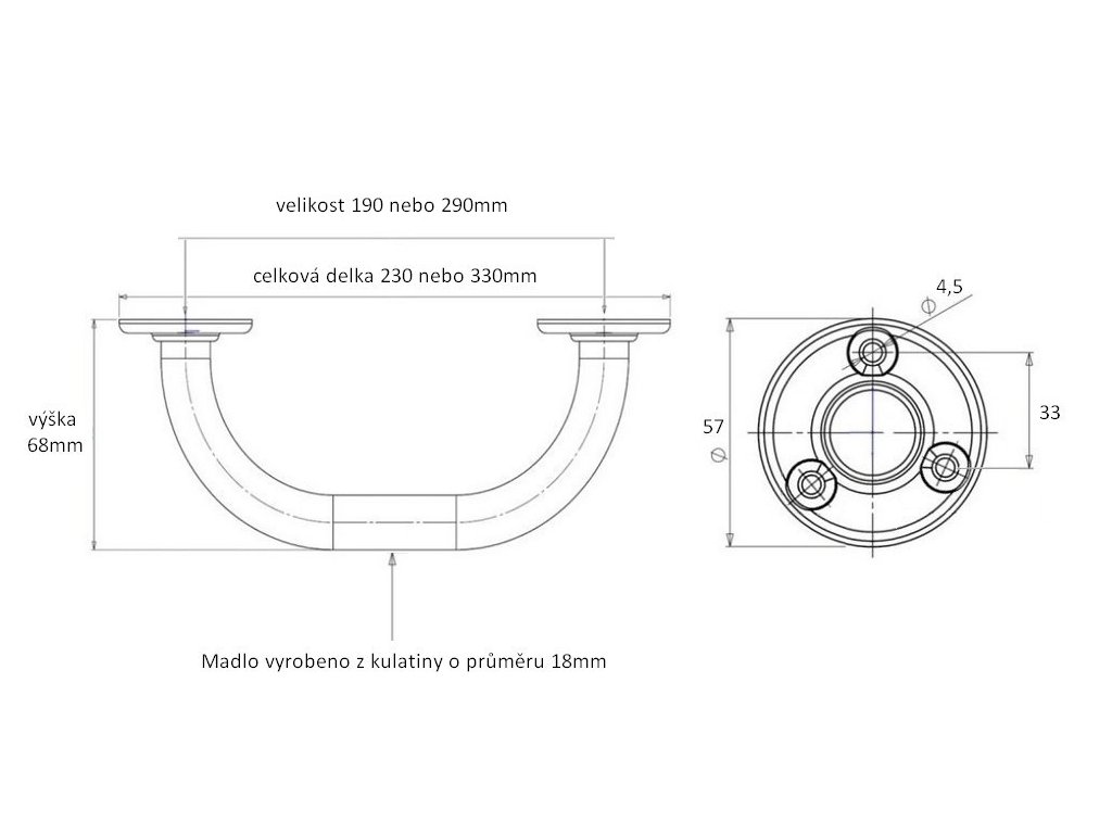 dvě velikosti - 190mm a 290mm (celková délka i s rozetami 230mm a 330mm)