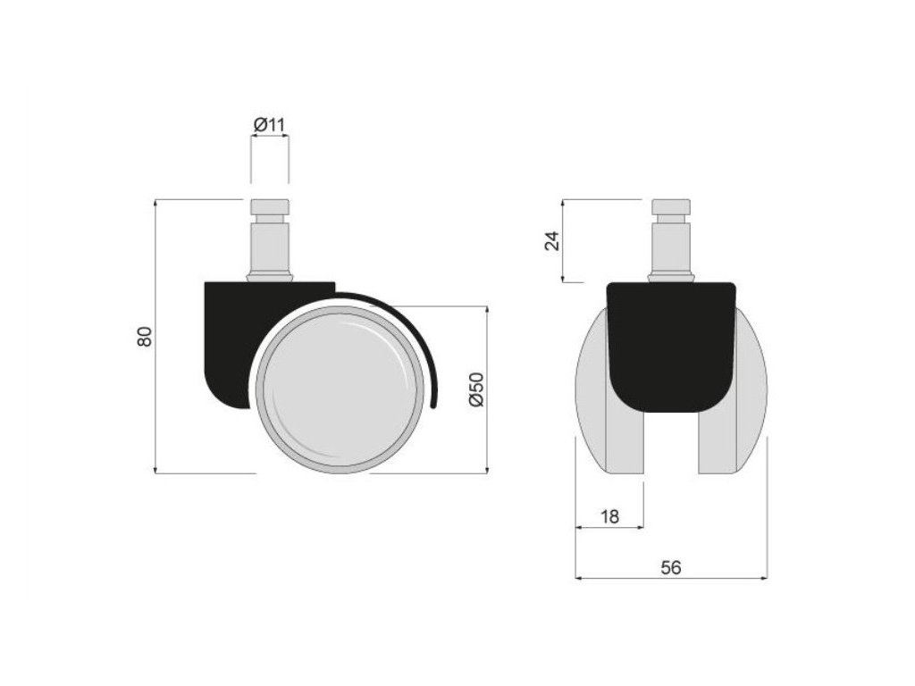 Nábytkové plastové pogumované kolečko fí 50mm ČEP 11mm